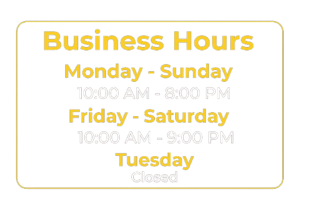 🌟 Friday – Saturday: 10:00 AM – 9:00 PM